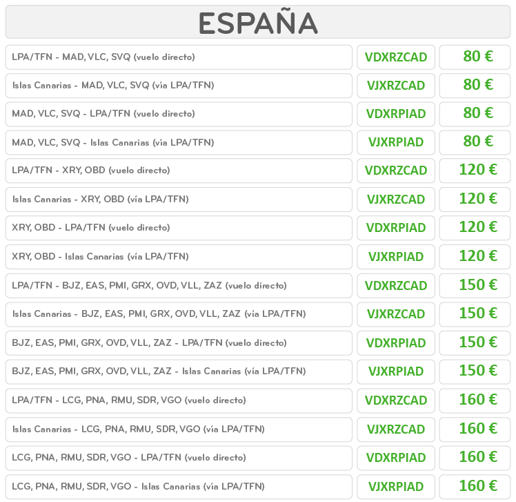 Las tarifas PEP FARES (Product Experience Program) son válidas para volar en las siguientes rutas nacionales. A continuación te indicamos más detalles: